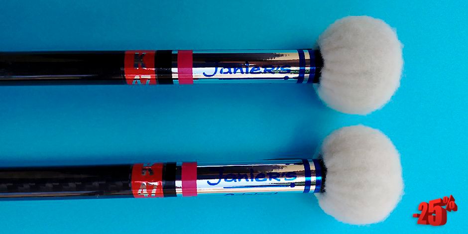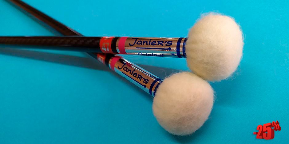 Baqueta para tímpanos. Modelo STACCATO.Feltro branco macio. Cabeça pequena, em formato redondo com uma ótima projeção sonora. Cabo em Fibra de Carbono 3K
